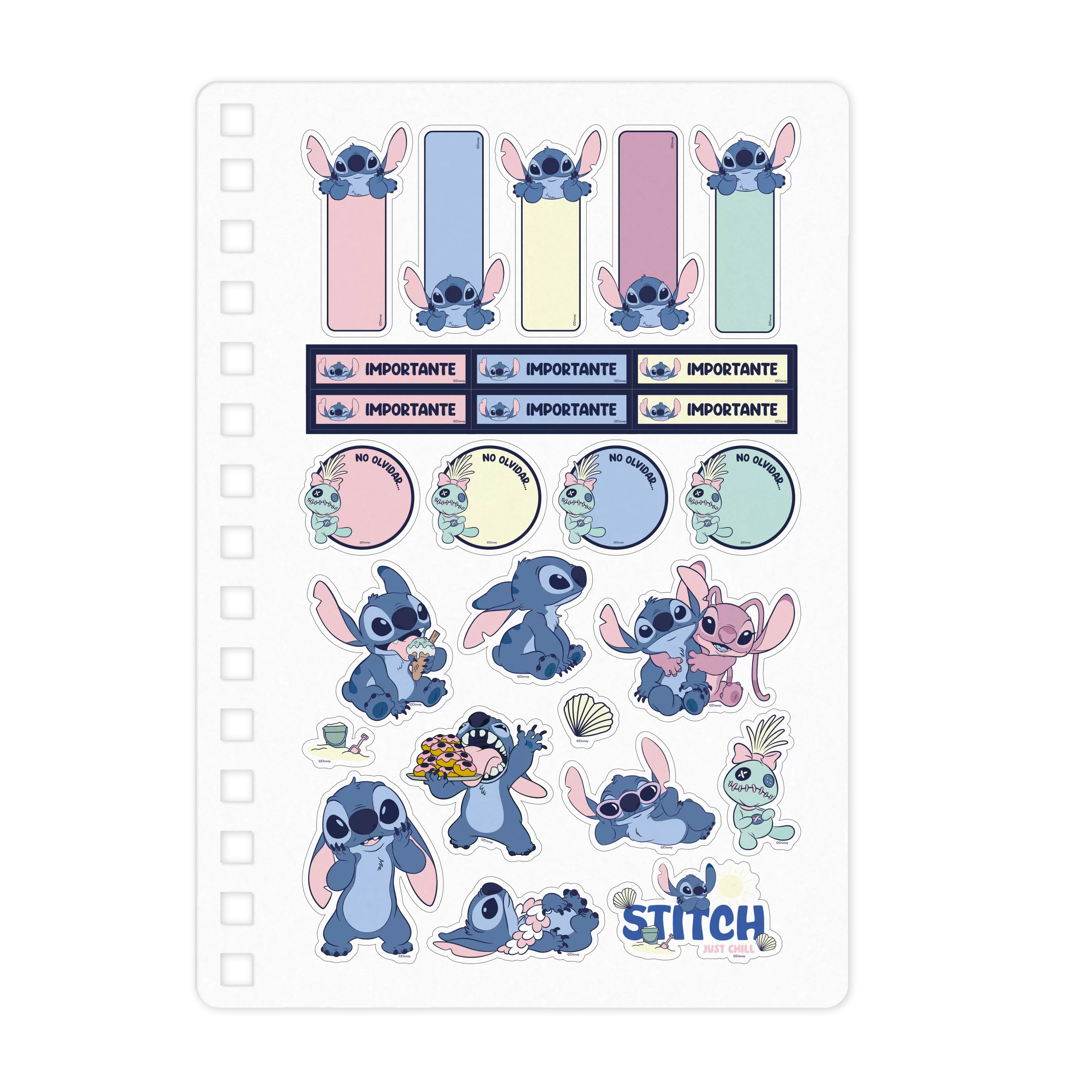 - Incluye stickers holográficos, sobre plástico y cinta señaladora.